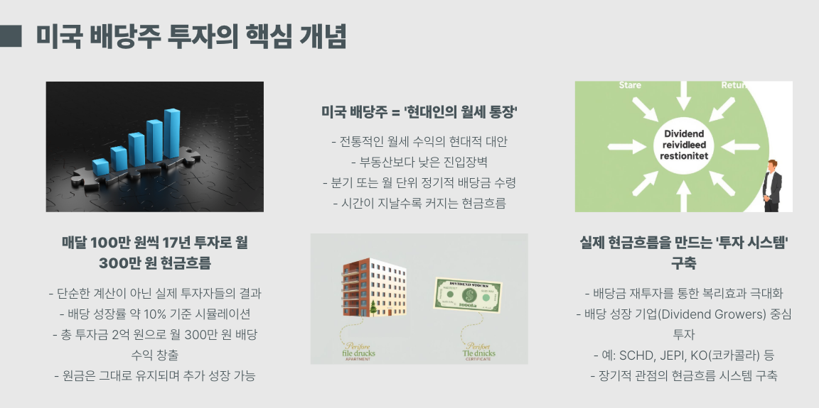 이 글에서는 미국 배당주 투자가 왜 ‘현대인의 월세 통장’이 될 수 있는지, 그리고 어떤 방식으로 준비하면 실제 현금흐름을 만드는 ‘투자 시스템’을 구축할 수 있는지 구체적으로 알려드립니다.