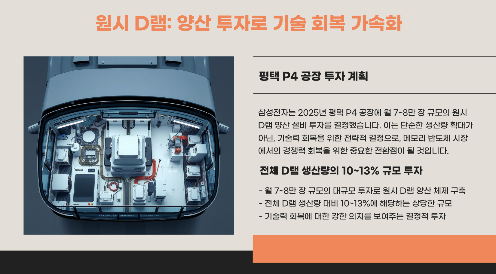 2025년, 삼성전자는 평택 P4 공장에 월 7~8만 장 규모의 원시 D램 양산 설비 투자를 결정했습니다.