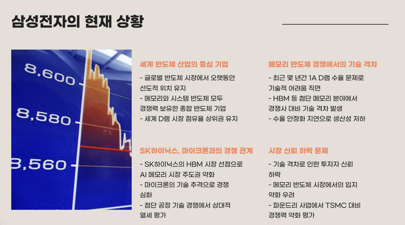 삼성전자, 그 이름만으로 세계 반도체 산업의 중심에 있었던 기업. 그러나 최근 몇 년간 메모리 반도체 경쟁에서 SK하이닉스, 마이크론 등과의 기술 격차가 언급되면서 시장의 신뢰를 일정 부분 잃어버렸다는 평가도 있었습니다.