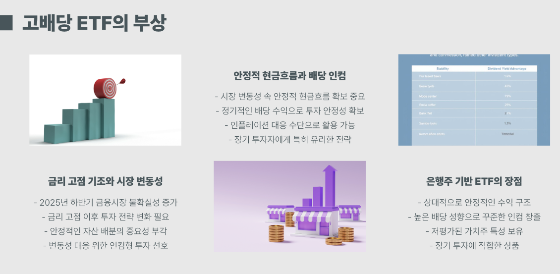고배당 ETF에 대한 관심이 그 어느 때보다 높아지고 있습니다. 특히 금리 고점 기조와 시장 변동성이 격화되는 2025년 하반기, 안정적인 현금흐름과 배당 인컴을 원하는 투자자들에게 ETF는 매우 매력적인 선택지입니다.