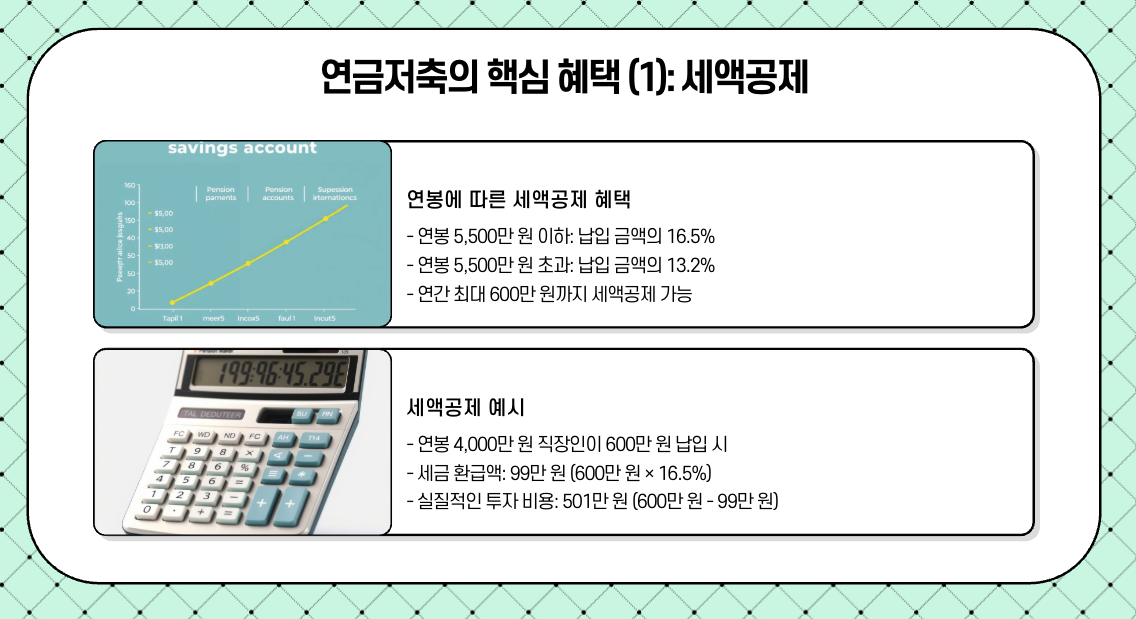 예: 연봉 4,000만 원 직장인이 600만 원을 납입하면 99만 원의 세금을 환급받을 수 있습니다. 이 정도면 웬만한 소득공제보다 훨씬 강력합니다.