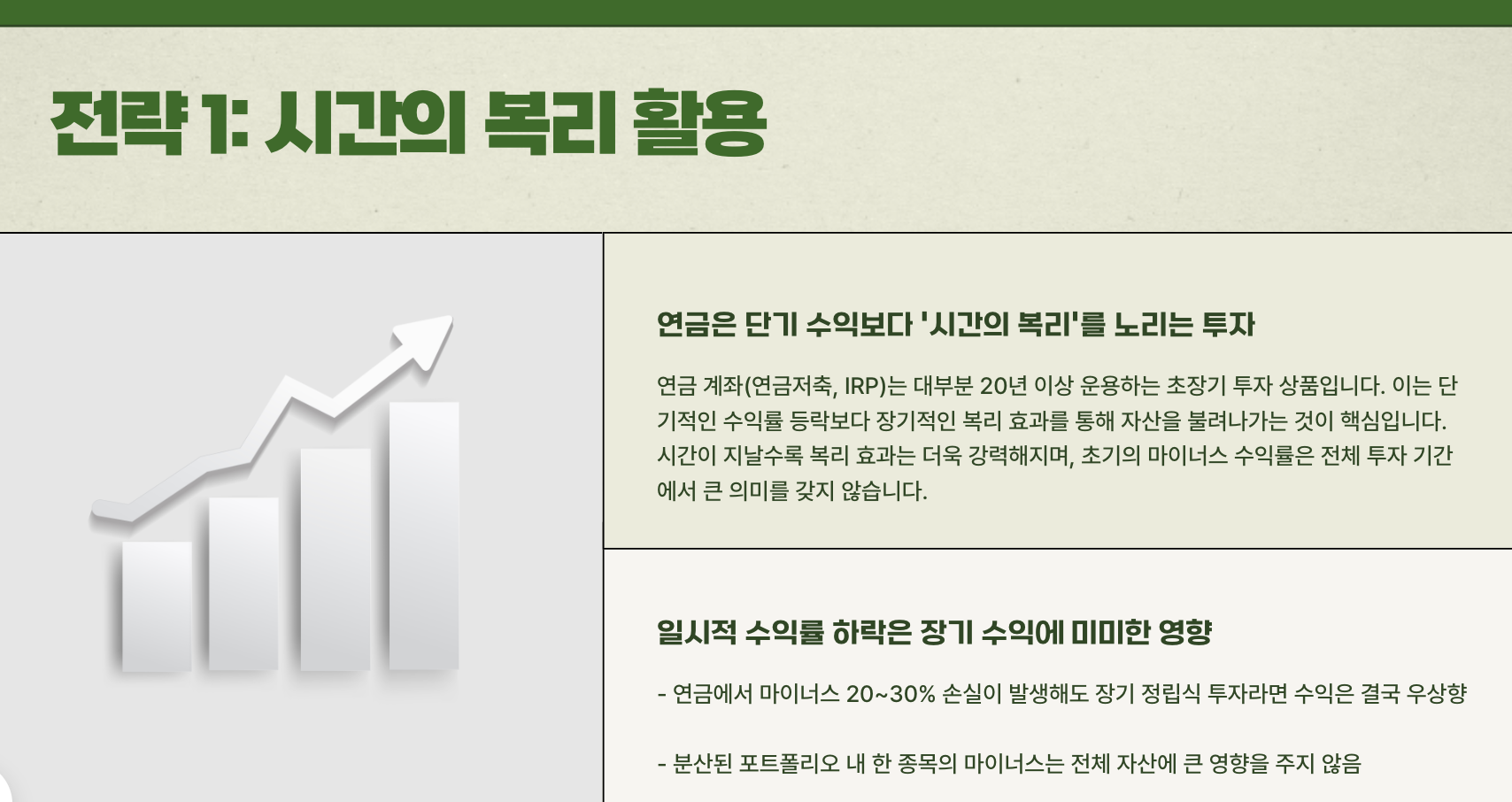 1. 연금은 단기 수익보다 ‘시간의 복리’를 노리는 투자