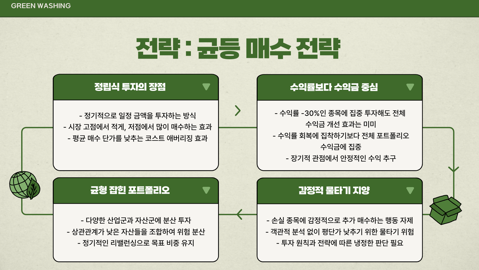 연금투자는 정기적으로 일정 금액을 투자하는 정립식 투자 방식이기 때문에, 감정에 흔들려 한 종목에 물타기를 집중하는 것은 장기적으로 불리할 수 있습니다.