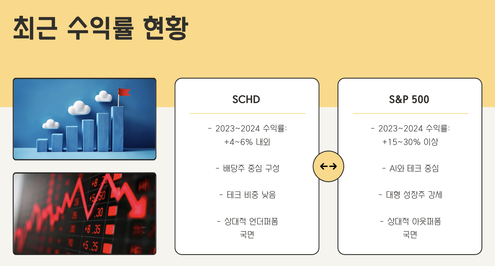 - SCHD 2023~2024 수익률: +4~6% 내외