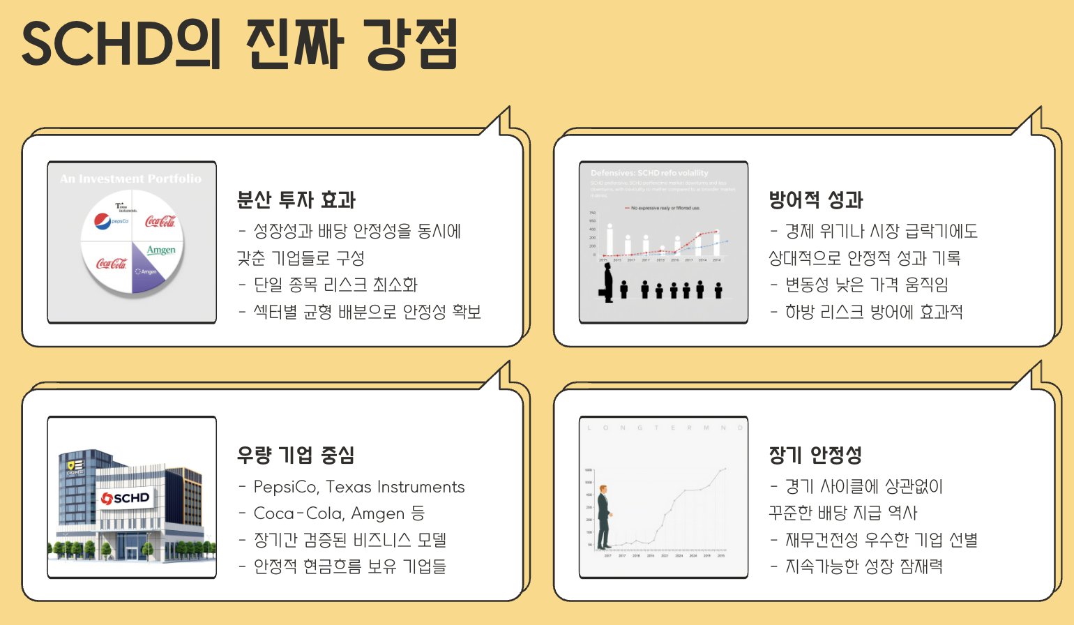 - SCHD는 일시적 테마에 흔들리지 않고, 지속가능한 기업 중심 투자 전략을 유지합니다.
