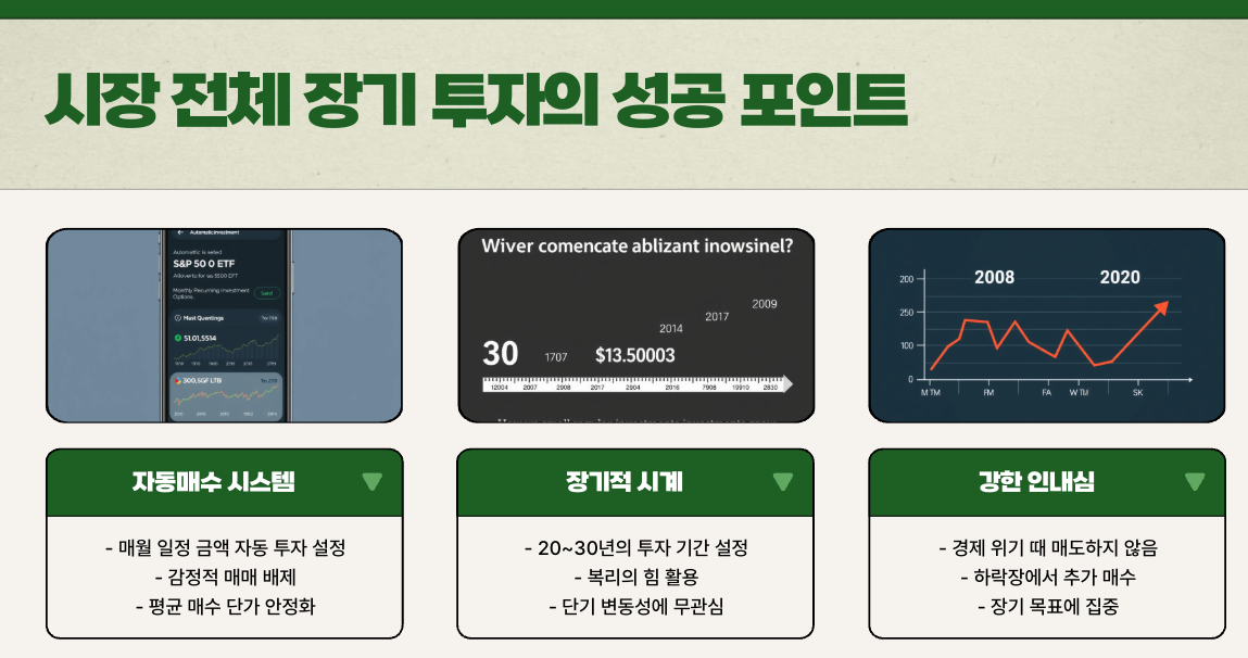 이 전략은 개별 종목 분석 없이도 시장의 성장에 올라타는 방식으로, 직장인 투자자나 초보자에게 최적입니다.