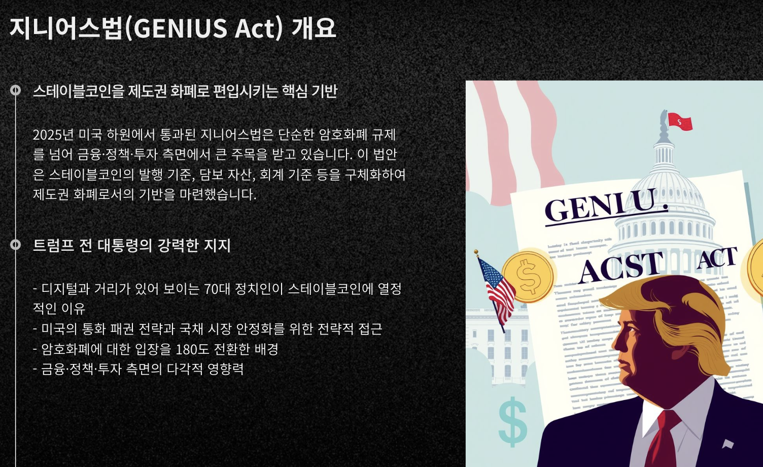 지니어스법을 중심으로 한 미국의 스테이블코인 제도화 움직임은 단순한 암호화폐 이슈가 아닙니다.