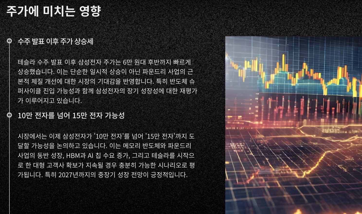 - 미국 텍사스 생산 기반 강화 → TSMC와의 차별성 확보