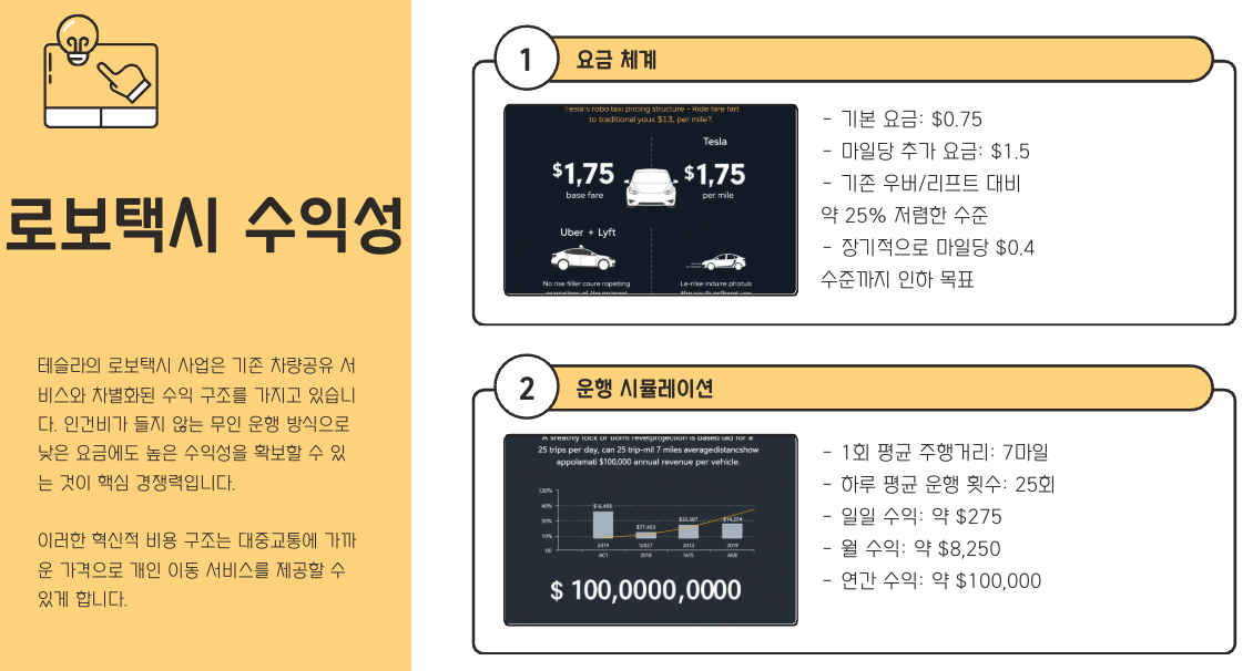 → 차량 1대 연 매출 약 10만 달러 - 차량 가격 대비 연 매출 2배 이상 가능