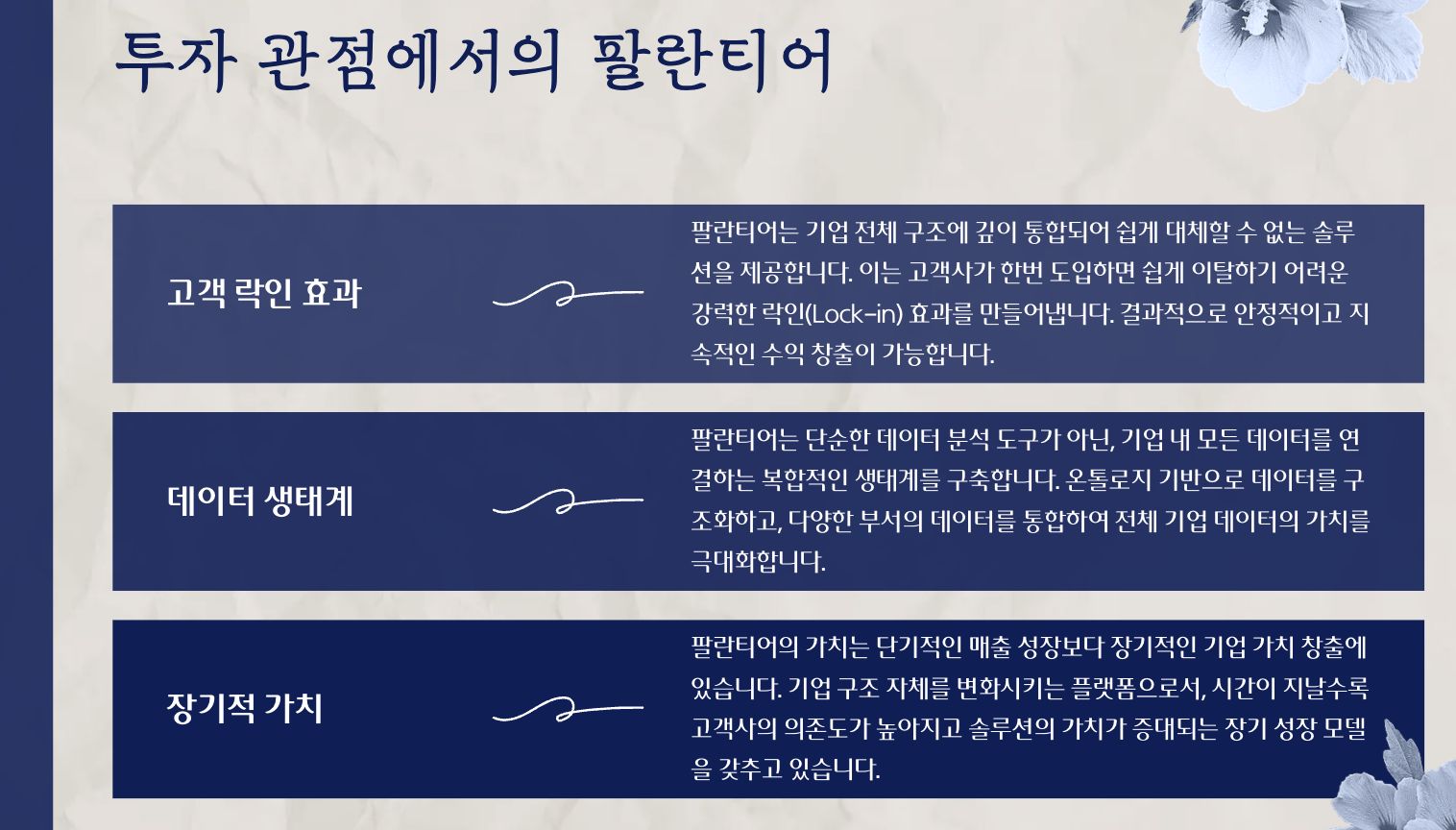 - 팔란티어: 처음부터 고객 맞춤으로 구조적 설계