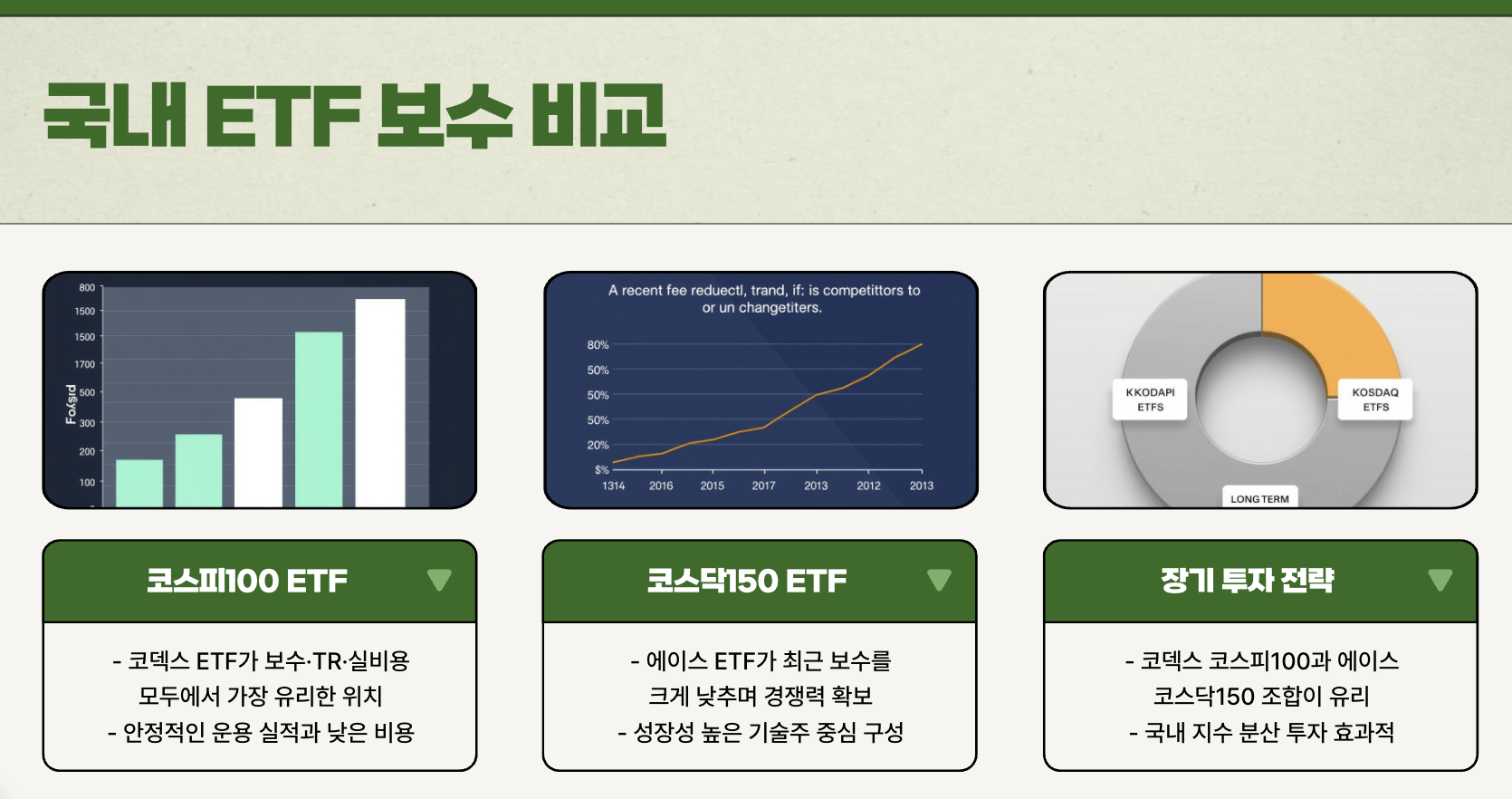 장기 투자자는 단순 보수 비교에 집착하기보다 ETF 보수 + 지수 성장성 + 증권사 이벤트 혜택을 종합적으로 고려하는 것이 최적의 전략입니다.