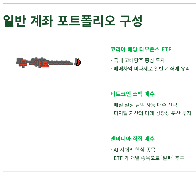 여기에 여유가 생기면 국내 배당 ETF나 AI 반도체 테마 ETF를 소액 추가하는 것이 이상적입니다.