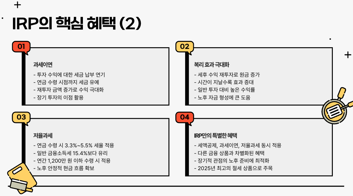 IRP의 가장 큰 장점은 세제 혜택입니다.